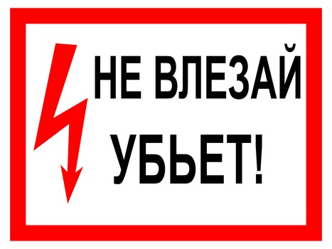 Плакат электробезопасности, использующийся на оборудовании (узлах оборудования), дверцах электроприборов, электрощитах, в помещениях или зонах опасности поражения электрическим током.