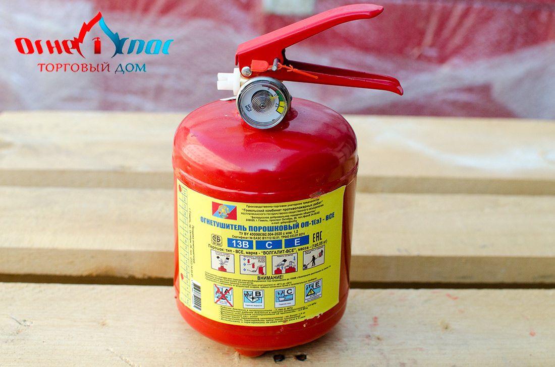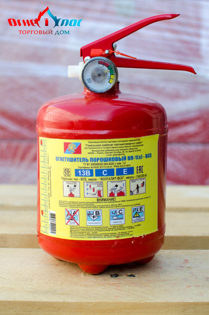 Из недостатков порошковых огнетушителей можно отметить следующие: загрязнение порошком объекта пожаротушения, вероятность слеживания порошка и потери работоспособности огнетушителя (при неправильном хранении), ограниченное время срабатывания порошковых огнетушителей (находится в диапазоне от 5 до 15 секунд). Купить огнетушитель ОП-1, Вы можете, позвонив нашим менеджерам по телефонам указанным выше. Продукция имеет сертификат соответствия МЧС РБ.