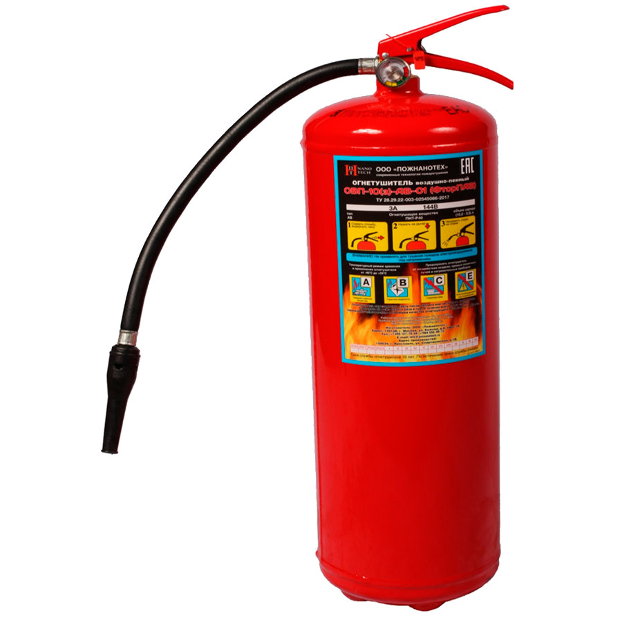 Огнетушитель ОВП-10 (12 литров) Пожнанотех зимний — переносной воздушно-пенный огнетушитель с углеводородным зарядом с массой огнетушащего вещества (ОТВ) 10 кг. Предназначен для работы при температурах от -40 до 50°C.