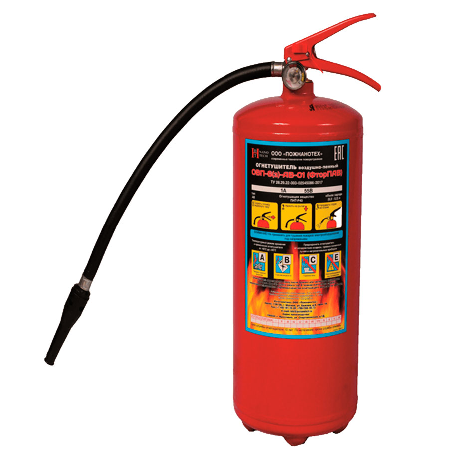 Огнетушитель воздушно-пенный ОВП-6(з)-АВ-02 (ФторПАВ) предназначен для эксплуатации при температурах от -50 до +50 С.