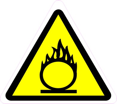 Используется на дверях помещений, дверцах шкафов для привлечения внимания на наличие окислителя.