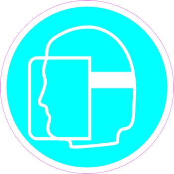 Знак "Работать в защитном щитке" применяется на рабочих местах и участках предприятий, где необходима защита лица и органов зрения.