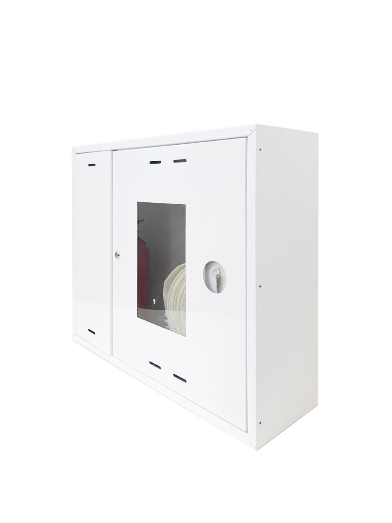 • Предназначен для размещения комплекта пожарного крана Dy50 или Dy65 (с угловым клапаном) и одного огнетушителя.