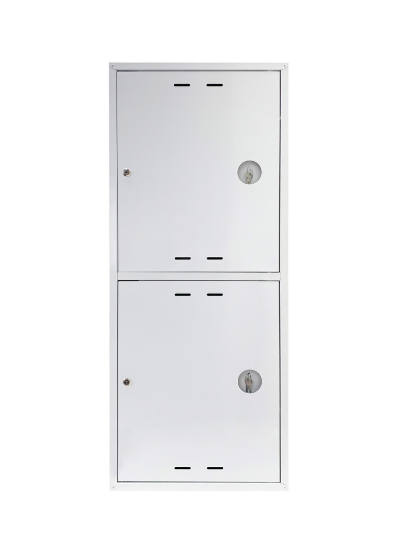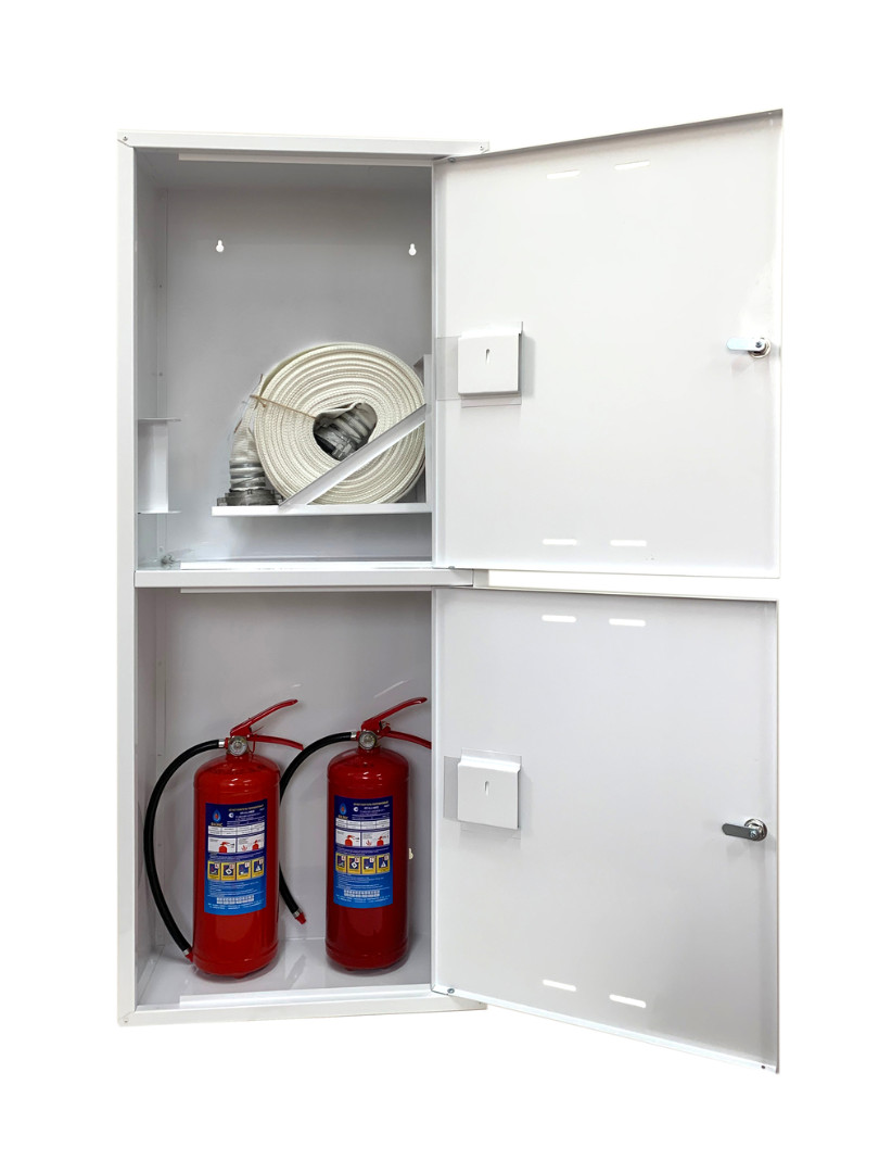 • Предназначен для размещения комплекта пожарного крана Dy50 или Dy65 (с угловым клапаном) и одного огнетушителя.