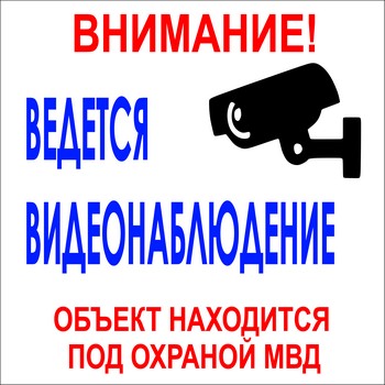 Знак общественного места "Внимание! Ведется видеонаблюдение, объект находится под охраной МВД".