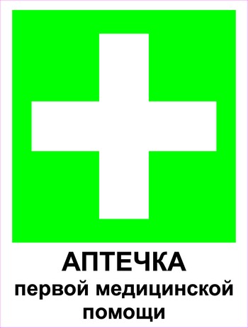 Место размещения: на стенах, дверях помещений для обозначения мест размещения аптечек первой медицинской помощи